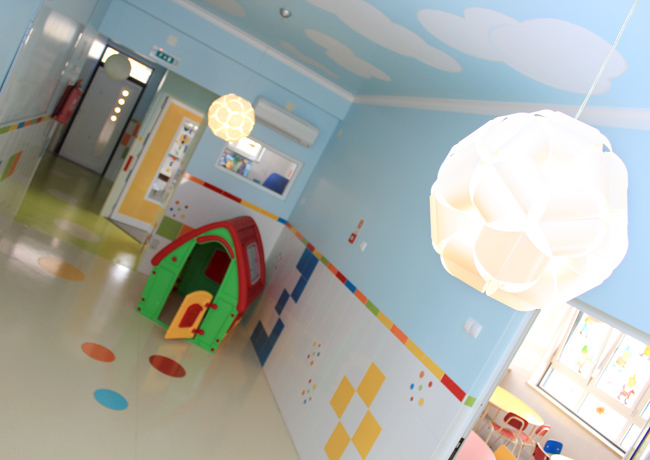 Com salas de actividades amplas, muita luminosidade e arejamento natural, pavimento vinilíco Tarkett (com espessura apropriada para creche/jardim de infância) e ar condicionado cheias de cor e alegria, as crianças podem brincar com todo conforto, comodidade e segurança.