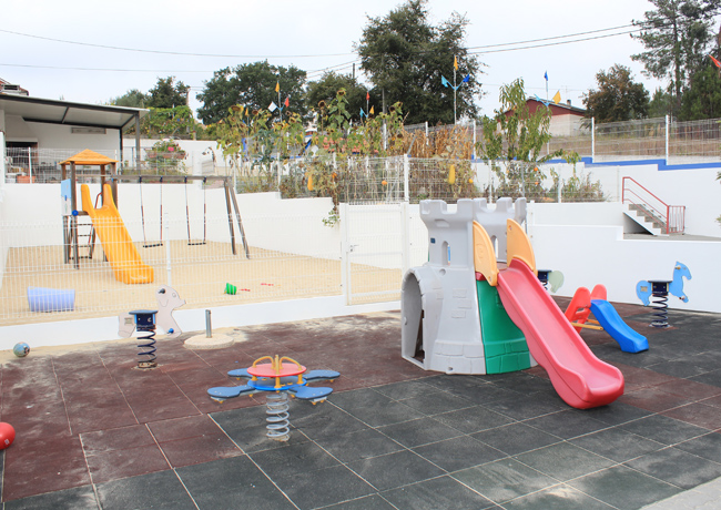 Além das salas (“Anjinhos”, “P’canitos”, “Grandotes” e “Sala Arco-Iris”), fraldários/ casas de banho, salas de refeições, as crianças têm ao seu dispor um amplo espaço exterior.