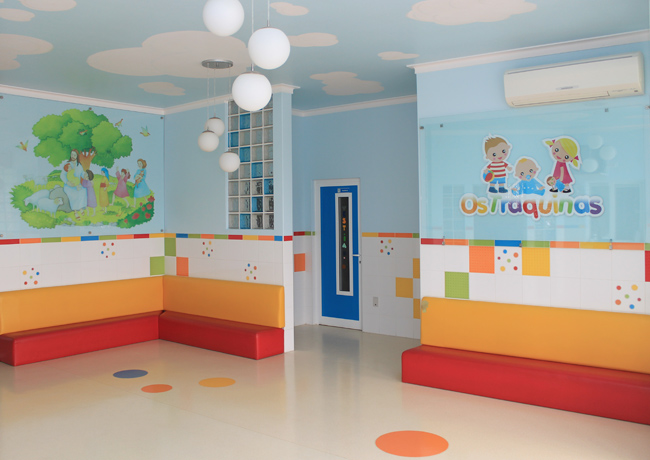 Com salas de actividades amplas, muita luminosidade e arejamento natural, pavimento vinilíco Tarkett (com espessura apropriada para creche/jardim de infância) e ar condicionado cheias de cor e alegria, as crianças podem brincar com todo conforto, comodidade e segurança.